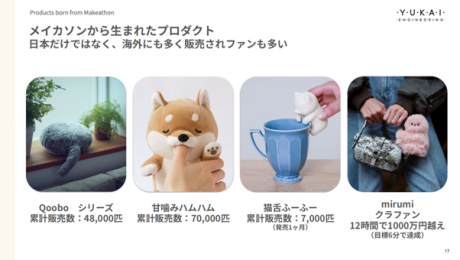 ユカイ工学では、毎週自由参加の「妄想会」を実施し、どんなアイデアも否定せずに出し合います。さらに年に一度、新製品を企画‧開発‧発表する社員合宿を開催し、必ずプロトタイプまで形にすることを徹底。触れて初めて伝わる価値を重視しているといいます。